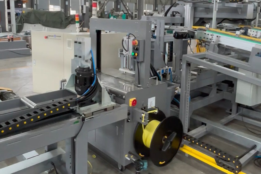 Máquina perfiladora de espesor de altura y ancho de perno y pista con cambio automático de ancho y espesor con sistema de embalaje automático